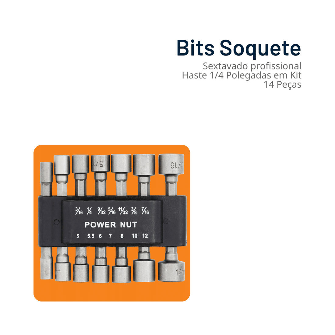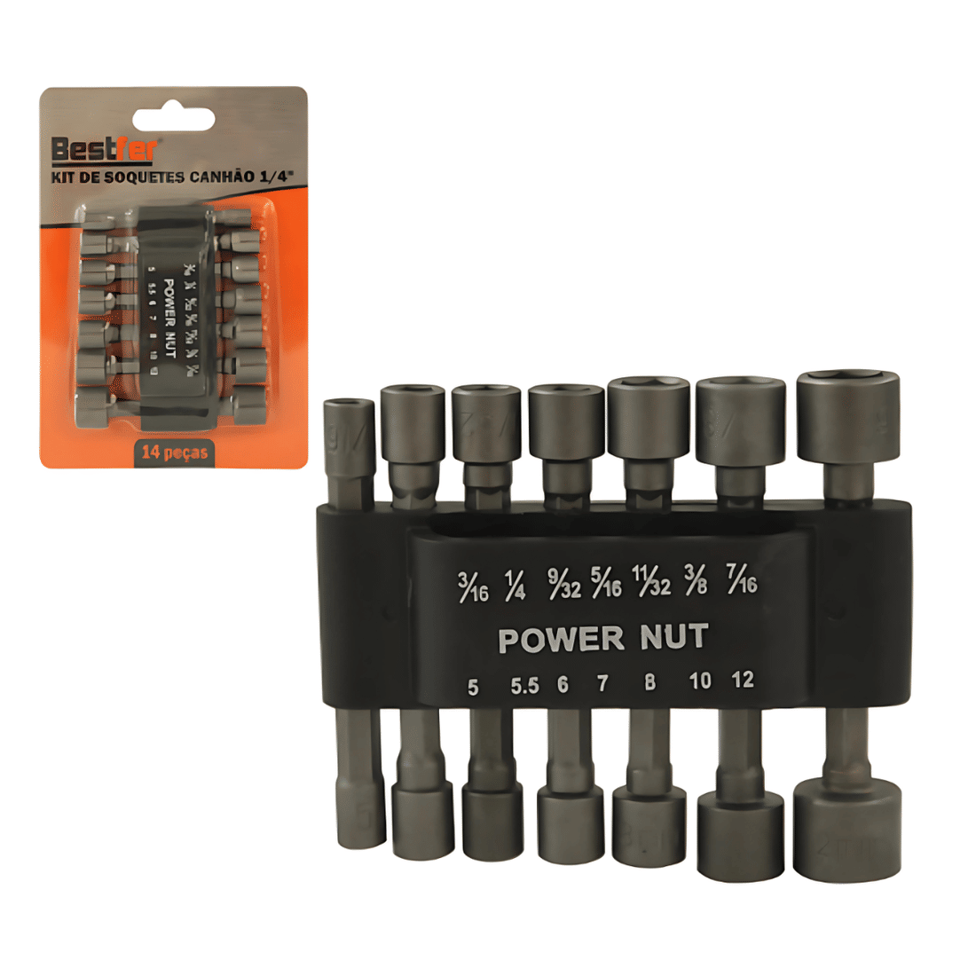 O Kit de Bits Soquete Canhão Sextavado Profissional com haste 1/4" é ideal para quem busca praticidade e precisão em trabalhos de aperto e soltura de porcas e parafusos. Com uma haste de encaixe padrão de 1/4", este kit proporciona maior versatilidade e compatibilidade com diversas parafusadeiras e chaves de impacto. Feito em material de alta resistência, o kit é indicado para uso profissional e doméstico, garantindo durabilidade e eficiência em atividades diárias. Disponível em variações de 14 ou 9 peças, este conjunto oferece uma ampla gama de tamanhos, tornando-o indispensável para quem precisa de ferramentas versáteis e de alta performance.