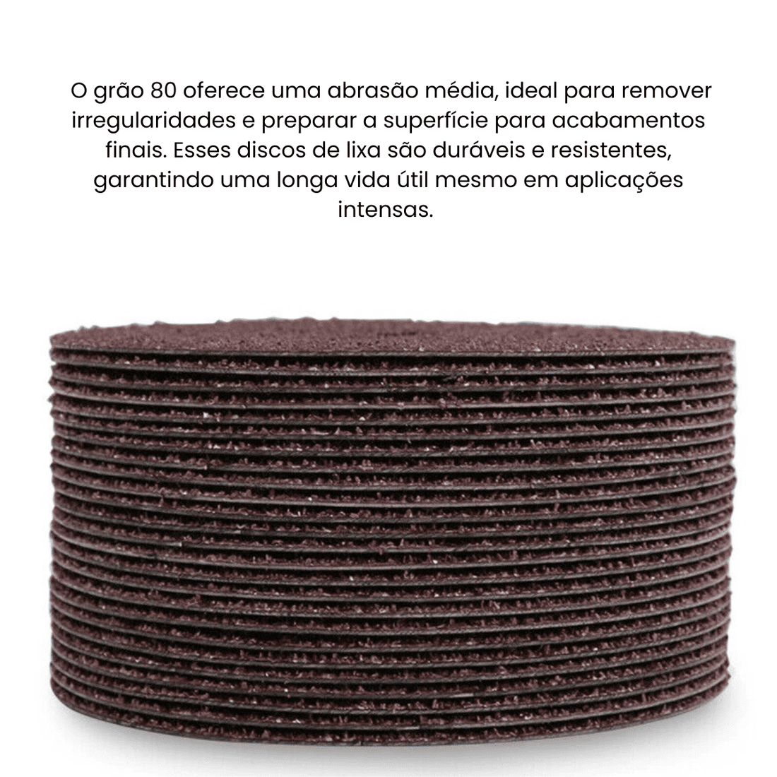 Kit contendo 10 discos de lixa com grão 80, no tamanho de 4 1/2" polegadas (115mm), ideal para desbaste e preparação de superfícies em diferentes materiais.