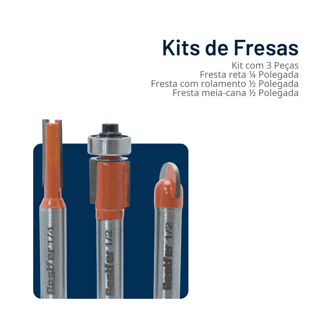 Kit Jogo De Fresas Brocas Mini Retífica Metal Duro Aço 3 Peças - Bestfer ALTA QUALIDADE: As fresas são feitas de aço de carbono, um metal resistente e durável. DESIGN DE CORTE DUPLO: As linhas de ranhura da cabeça da fresa são cruzadas, o que as torna mais adequadas para materiais, como madeira, plástico e alumínio. Excelente para trabalhos de detalhes finos. MULTIUSO: O conjunto de fresas inclui tudo o que você precisa para esculpir, perfurar, gravar, polir e remover bordas afiadas, sendo adequado para diversos tipos de materiais. VARIEDADE: O kit inclui 3 modelos de formatos para todos os tipos de cortes. USADO EM - Madeira - Plástico - Alumínio - Esculturas em pedra - Metal Garantia do vendedor: 90 Dias Qualidade Garantida Formigão Ferramentas.