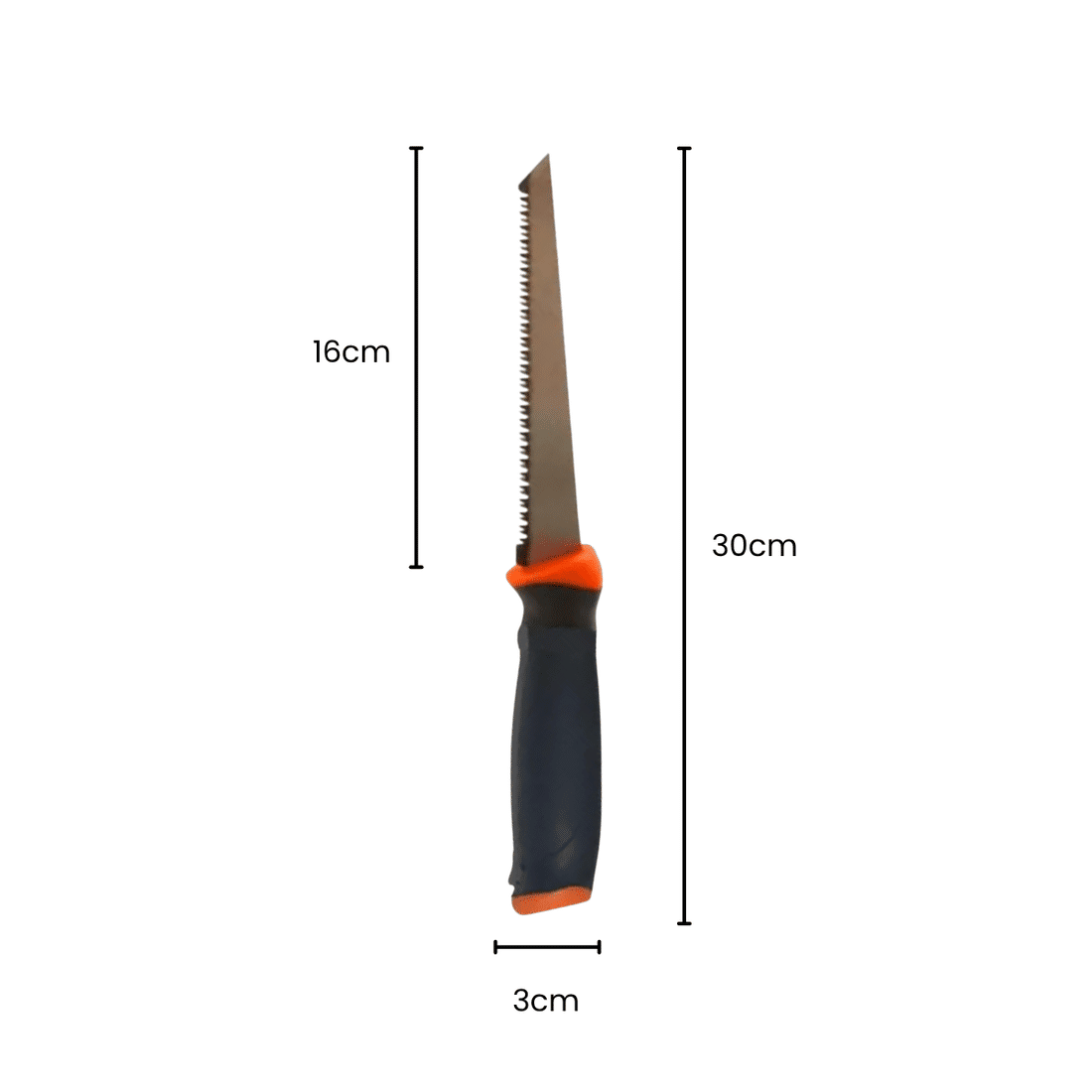 O Serrote para Gesso Drywall 12'' 305mm Profissional é a ferramenta perfeita para cortes precisos em drywall, gesso e outros materiais leves. Com lâmina afiada e ponta fina, ele proporciona cortes rápidos e limpos, ideal para ajustes e acabamentos em obras e reformas. Fabricado com materiais de alta durabilidade, é resistente ao desgaste, garantindo eficiência em uso prolongado. Seu design ergonômico e cabo confortável oferecem controle e segurança, tornando-o indispensável para profissionais de construção, gesseiros e instaladores de drywall.
